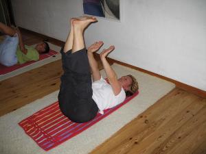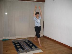 In meiner Übungspraxis spielt eine stabile Haltung eine zentrale Rolle, in Yoga nennen wir dies Tadasana . Hier ist der Mensch die Verbindung zwischen der Erde und dem Himmel. Die aufgerichtete Wirbelsäule zeigt und gibt uns Kraft. Die Energiezentren sind nicht blockiert, wir spüren wie Energie in uns fließt. Damit diese Übung für uns nicht anstrengend sondern bequem ist brauchen wir die Dehnfähigkeit der Beine, ein bewegliches Becken mit einem kräftigen Beckenboden und ein geöffnetes Brustbein. Wichtig ist, dass die Empfindung im Lot zu sein wiedeentdeckt wird.Ich empfehle die Beckenbodenübungen von Benita Cantieni