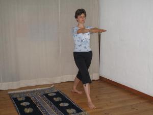 Erst wenn wir die Fähigkeit erlangt haben fest und weich zugleich zu stehen, können wir mit den eigentlichen Stehübungen weitermachen, wie alle Stelllungen des Dreickes, die gedrehten Formen, die Einbeinübungen.